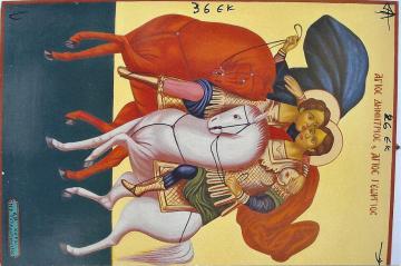 2) Αγιοι Γεώργιος και Δημήτριος εφιπποι ασπάζονται : τιμή 600 ευρω